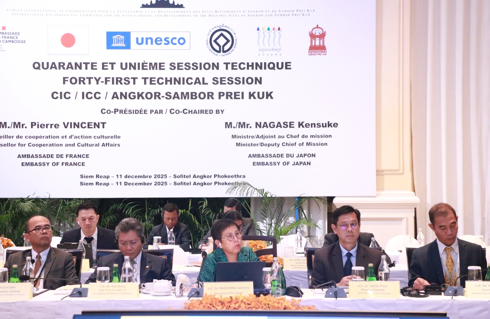 នៅព្រឹកថ្ងៃទី១១ ខែធ្នូ ឆ្នាំ២០២៥នេះ គណៈកម្មាធិការអន្តរជាតិដើម្បីសម្របសម្រួលកិច្ចគាំពារ និងអភិវឌ្ឍន៍តំបន់ប្រវត្តិសាស្រ្តរមណីយដ្ឋានអង្គរ និងសំបូរព្រៃគុក ហៅកាត់ថា អាយស៊ីស៊ី-អង្គរ និងសំបូរព្រៃគុក បានបើកសម័យប្រជុំបច្ចេកទេសលើកទី៤១ និងកិច្ចប្រជុំពេញអង្គលើកទី៣២ ដែលដឹកនាំដោយសហប្រធានប្រទេសបារាំង និងប្រទេសជប៉ុន។ កិច្ចប្រជុំនេះរៀបចំឡើងរយៈពេល២ថ្ងៃ ចាប់ពីថ្ងៃទី១១ ដល់ថ្ងៃទី១២ ខែធ្នូ ឆ្នាំ២០២៥ ក្រោមវត្តមានដ៏ខ្ពង់ខ្ពស់លោកជំទាវបណ្ឌិតសភាចារ្យ ភឿង…