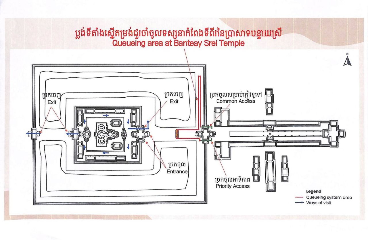 អាជ្ញាធរជាតិអប្សរាជូនដំណឹងពីការដាក់អនុវត្តសាកល្បងការតម្រង់ជួររង់ចាំ(A Queueing System) នៅច្រកចូលកំពែងទីពីរនៃប្រាសាទបន្ទាយស្រី
