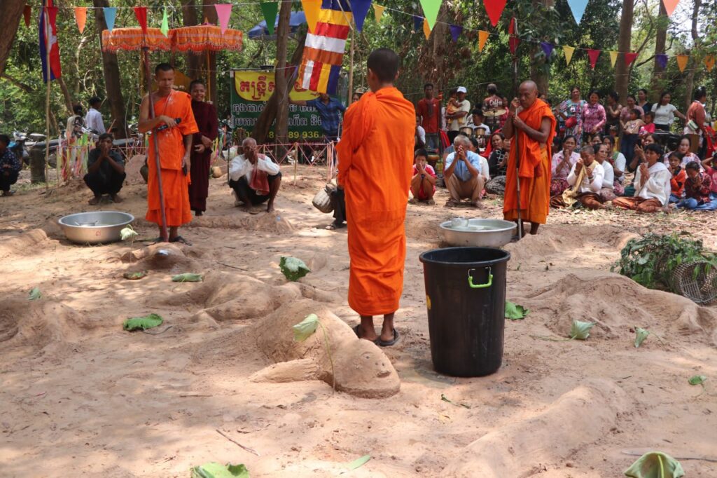 បន្ទាប់ពីកិច្ចពិធីតាមសាសនា និងបញ្ជូលរូបស្នងបានរាំលេងសប្បាយហើយ នៅខាងមុខប្រាសាទលាក់នាង ទៀតសោត អ្នកភូមិបានសូនដីខ្សាច់រាងបួនជ្រុងជារូបនាគព័ន្ធ តំណាងស្រះទឹក ក្នុងស្រះមានសត្វដូចជា ក្តាម ត្រី កង្កែប អណ្តើក ក្រពើ កំពឹស ខ្យង អន្ទង់ ដែលត្រូវមានកិច្ចពិធីនិមន្តព្រះសង្ឃគង់ឈរជុំវិញស្រះ សូត្រធម៌មហាមេឃ ដើម្បីសុំទឹកភ្លៀង។