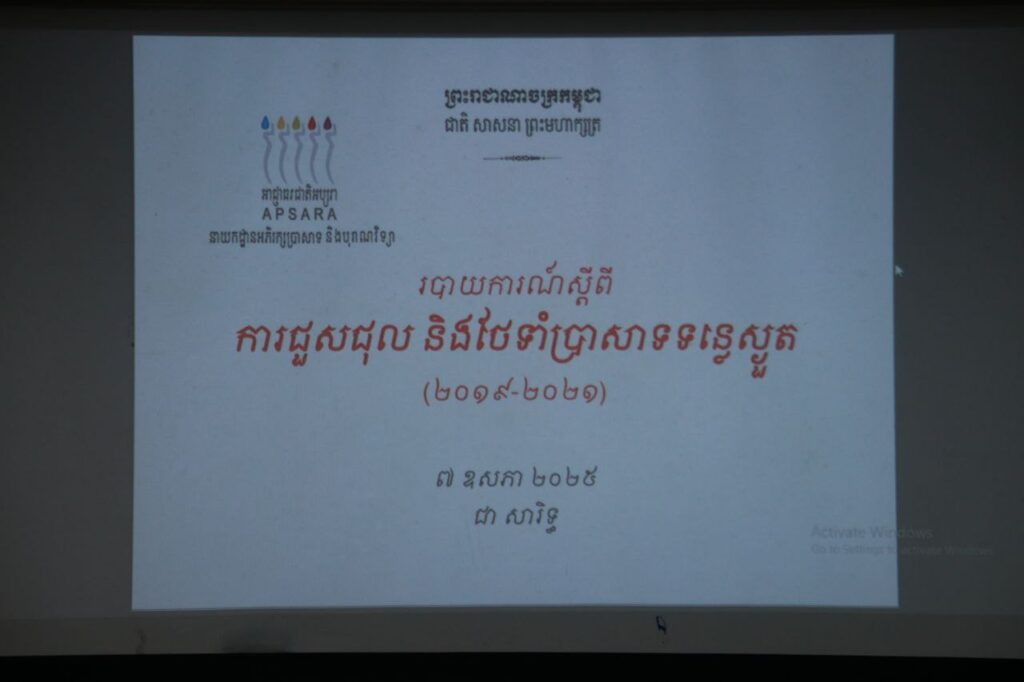 សូមជម្រាបថា អាជ្ញាធរជាតិអប្សរា រៀបចំសិក្ខាសាលាស្តីពី៖ ការពង្រឹងសមត្ថភាព ស្តីពីការរៀបចំរបាយការណ៍បច្ចេកទេស រយៈពេល៣ថ្ងៃ ចាប់ពីថ្ងៃទី០៥ ដល់ថ្ងៃទី០៧ ខែឧសភា ឆ្នាំ២០២៥ ក្នុងគោលបំណង ពង្រឹងសមត្ថភាព និងផ្តល់ចំណេះដឹងបន្ថែម ដល់មន្ត្រី បច្ចេកទេសនៃអាជ្ញាធរជាតិអប្សរា ពិសេសមន្ត្រីនិងបុគ្គលិក ដែលទទួលភារកិច្ចលើផ្នែកជួសជុល អភិរក្ស និងការរៀបចំឯកសារ (documentation)