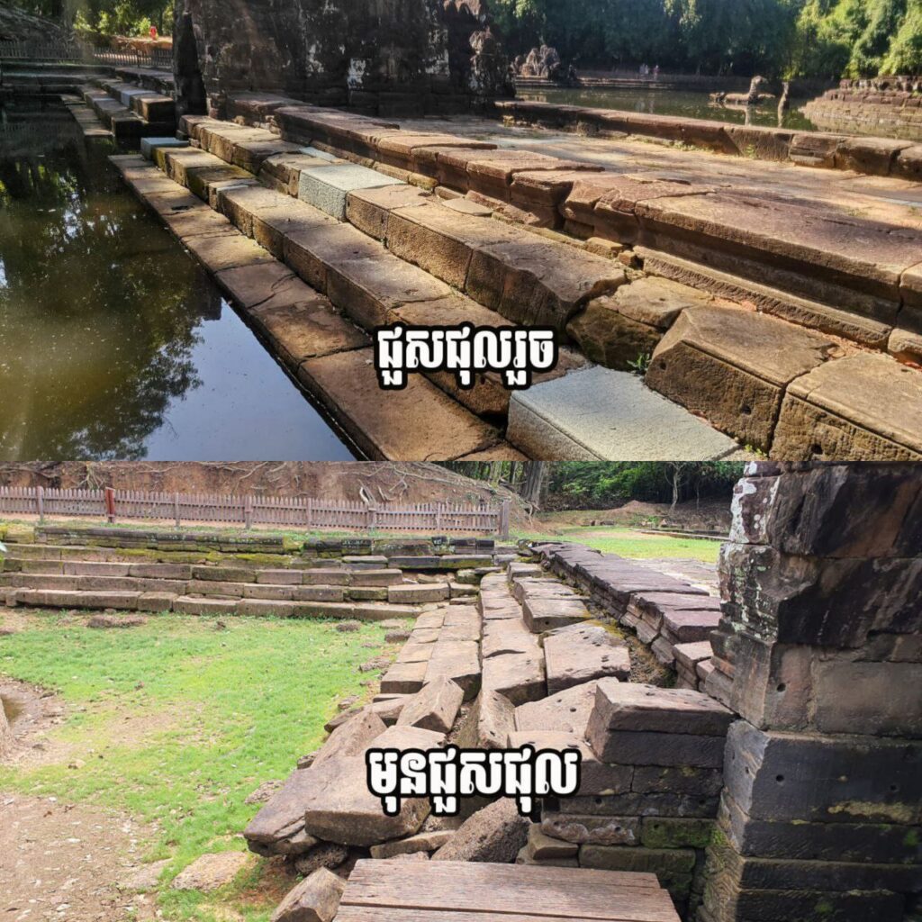 ក្រុមអ្នកជំនាញរបស់នាយកដ្ឋានអភិរក្សប្រាសាទនិងបុរាណវិទ្យា នៃអាជ្ញាធរជាតិអប្សរា បញ្ចប់ជួសជុលរចនាសម្ពន្ធទបង្ហូរទឹក នៅទិសខាងលិចនៃប្រាសាទនាគព័ន្ធដោយជោគជ័យ។