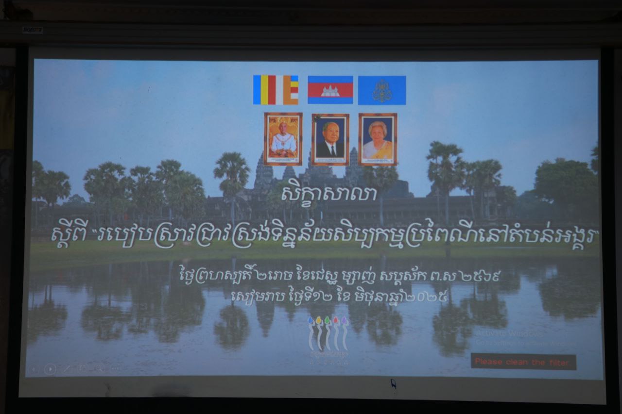 នៅព្រឹកថ្ងៃទី១២ ខែមិថុនា ឆ្នាំ២០២៥ អាជ្ញាធរជាតិអប្សរាតាមរយៈនាយកដ្ឋានស្រាវជ្រាវ បណ្ដុះបណ្ដាល និងផ្សព្វផ្សាយ បានរៀបចំសិក្ខាសាលាស្តីពី «របៀបស្រាវជ្រាវទិន្នន័យសិប្បកម្មប្រពៃណីនៅតំបន់អង្គរ» ដើម្បីចែករំលែកចំណេះដឹង និងបទពិសោធន៍ដល់មន្រ្តីដល់មន្រ្តី និងបុគ្គលិក ក្នុងចំណុះនាយកដ្ឋាន។