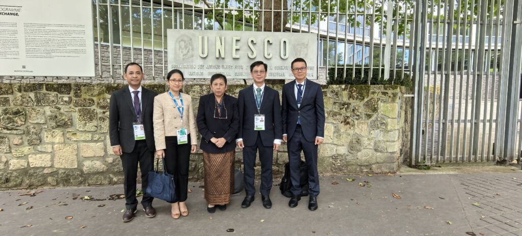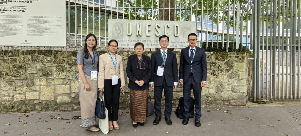 នៅព្រឹកថ្ងៃទី៨ ខែកក្កដា ឆ្នាំ២០២៥ នាទីស្នាក់ការកណ្តាលនៃអង្គការយូណេស្កូ ទីក្រុងប៉ារីស ប្រទេសបារាំង លោកជំទាវបណ្ឌិតសភាចារ្យ ភឿង សកុណា រដ្ឋមន្ត្រីក្រសួងវប្បធម៌និងវិចិត្រសិល្បៈ ប្រធានគណៈប្រតិភូរាជរដ្ឋាភិបាលកម្ពុជាចូលរួមកិច្ចប្រជុំលើកទី៤៧នៃគណៈកម្មាធិការបេតិកភណ្ឌពិភពលោក បានជួបពិភាក្សាជាមួយលោក Ernesto Renato Ottone Ramirez អគ្គនាយករងអង្គការយូណេស្កូទទួលបន្ទុកផ្នែកវប្បធម៌