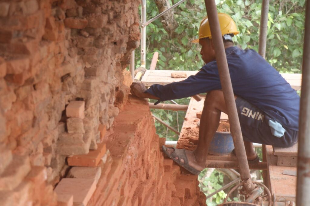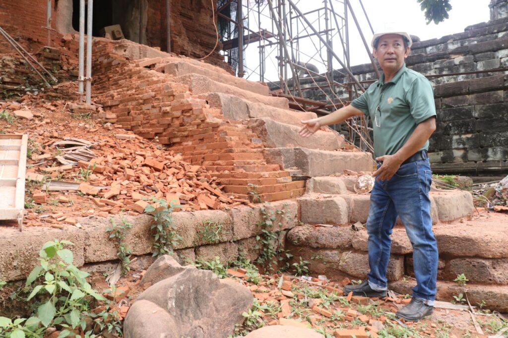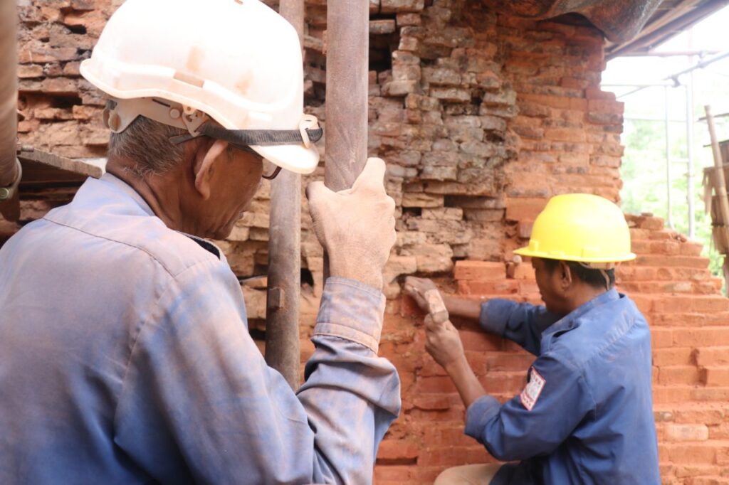 ក្រុមអ្នកជំនាញនៃអាជ្ញាធរជាតិអប្សរា ដែលជួសជុលពង្រឹងប្រាង្គលេខ៤នេះ ឡើងវិញត្រូវធ្វើការដោយប្រុងប្រុងប្រយ័ត្នបំផុតចំពោះហានិភ័យគ្រប់ស្រទាប់ឥដ្ឋនីមួយៗដែលពុកផុយ ហើយផ្នែកឥដ្ឋដែលត្រូវរុះរើ ធ្វើឡើងម្តងមួយៗចៀសវាងនាំឱ្យមានឥដ្ឋដែលមិនមានលំនឹងស្រាប់នោះរលុះធ្លាក់ខូចខាតបន្ថែមទៀត៕