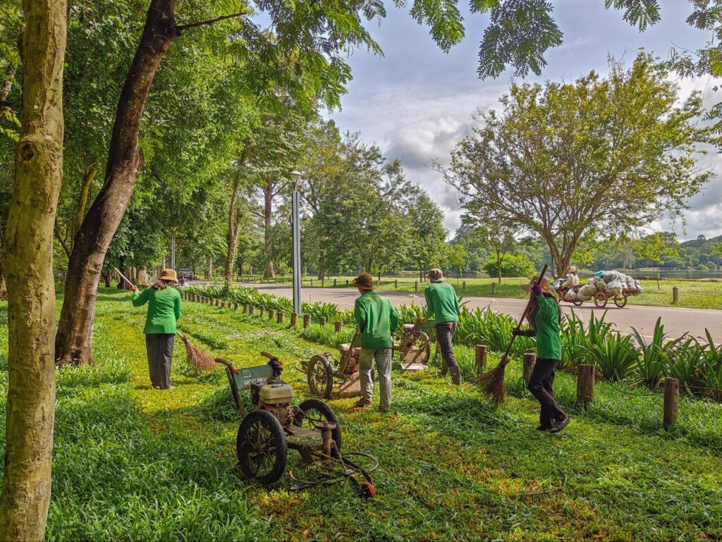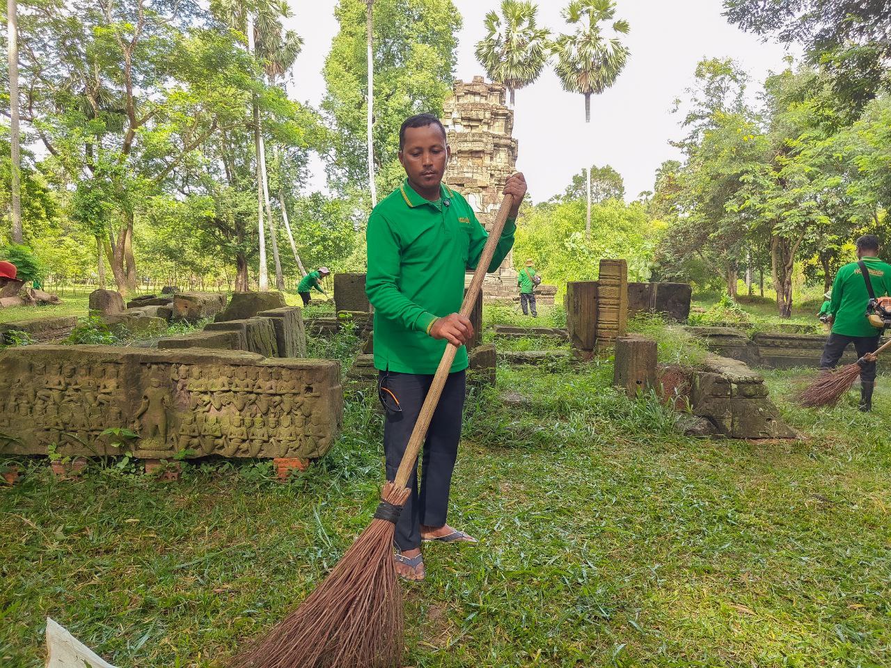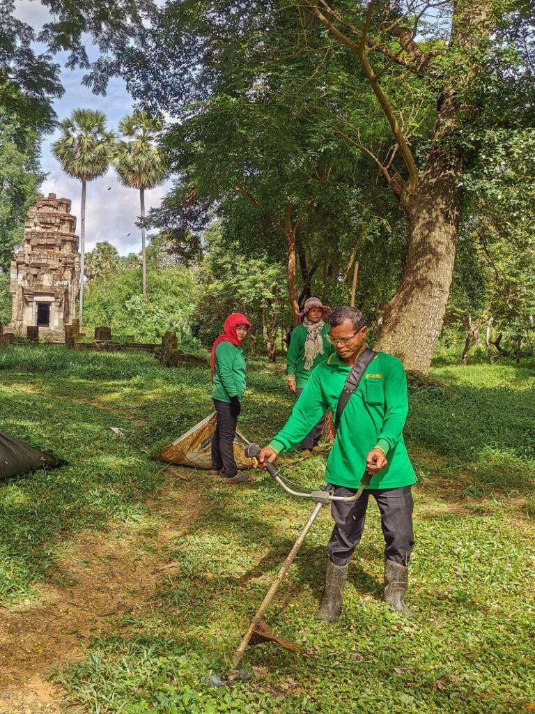 ក្រុមការងារសម្អាតបរិស្ថាននៅតំបន់រមណីយដ្ឋានអង្គរ បានចុះកាត់ស្មៅនៅបរិវេណខាងមុខប្រាសាទអង្គរវត្ត ដែលត្រូវសម្អាតប្រចាំថ្ងៃ ដោយចល័តពីទីតាំងមួយទៅមួយ មានប្រាសាទអង្គរវត្ត ក្រុងអង្គរធំ និងស្រះស្រង់ជាដើម។