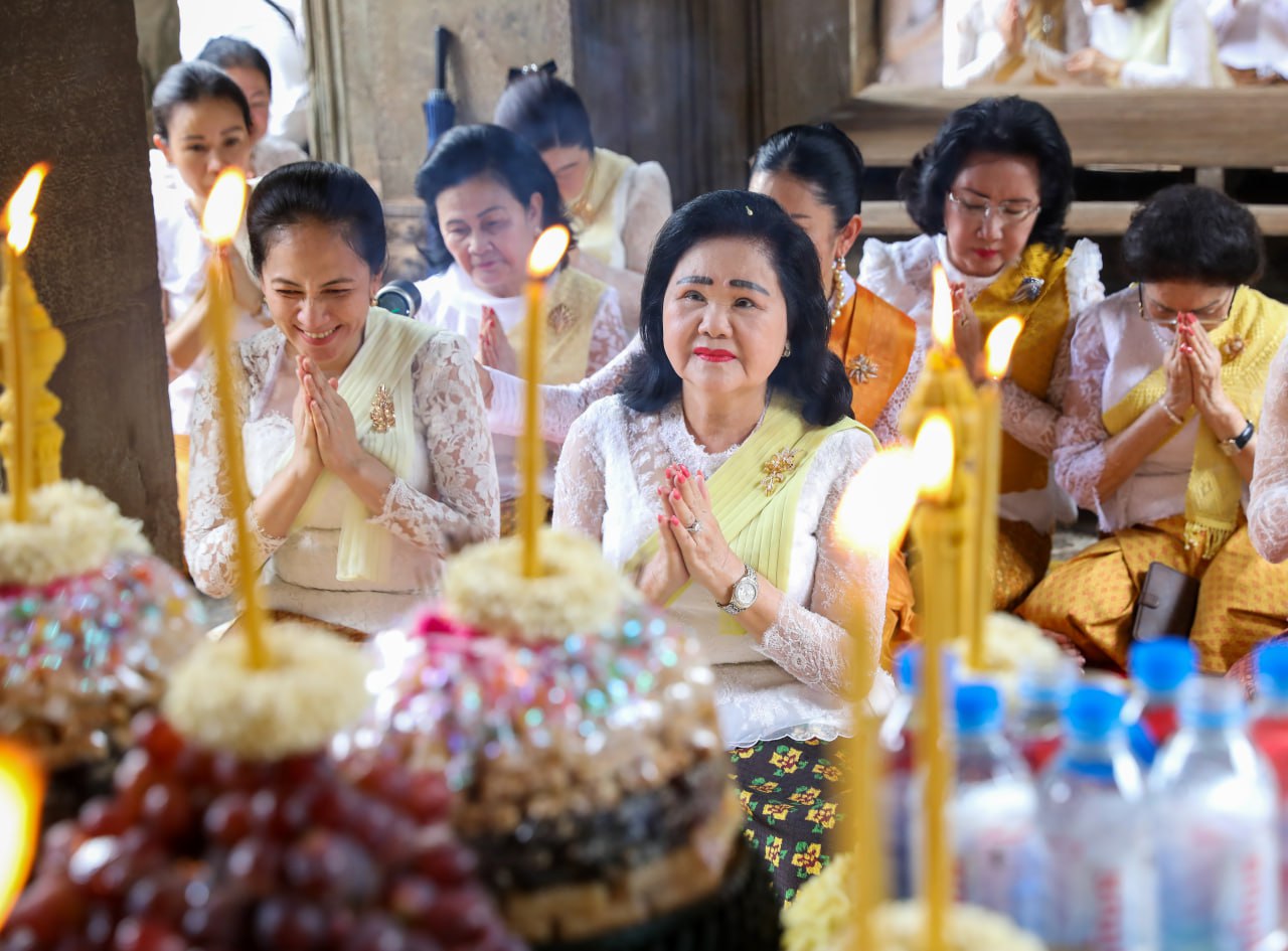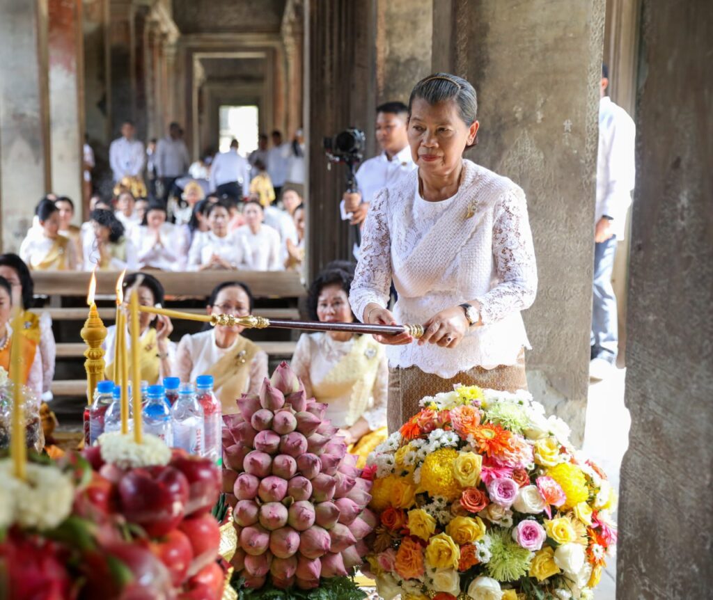 សម្តេចកិត្តិព្រឹទ្ធបណ្ឌិត ប៊ុន រ៉ានី ហ៊ុន សែន ប្រធានកាកបាទក្រហមកម្ពុជា រួមដំណើរដោយសម្តេចកិត្តិសង្គហបណ្ឌិត ម៉ែន សំអន ឧត្តមប្រឹក្សាផ្ទាល់ ព្រះមហាក្សត្រ លោកជំទាវបណ្ឌិត ពេជ ចន្ទមុន្នី ហ៊ុនម៉ាណែត និងលោកជំទាវជាភរិយាឥស្សរជនមួយចំនួនទៀត បានរៀបចំពិធីបួងសួងសុំសេចក្តីសុខចម្រើនជូនដល់ព្រះរាជាណាចក្រកម្ពុជា នៅបរិវេណប្រាសាទអង្គរវត្ត នាព្រឹកថ្ងៃទី១៥ ខែកក្តដា ឆ្នាំ២០២៥។
