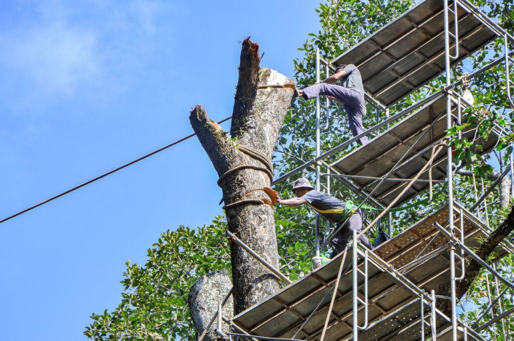 ក្រុមការងារព្រៃឈើ នៃអាជ្ញាធរជាតិអប្សរា បាននិងកំពុងកាត់ដើមឈើយាងមួយដើម ដែលមានហានិភ័យ អាចបង្កគ្រោះថ្នាក់ជាយថាហេតុ។