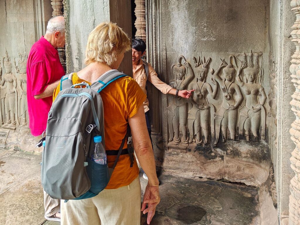 ពេលដែលភ្ញៀវទេសចរជាច្រើន បានមកទស្សនាប្រាសាទអង្គរវត្ត ក្រៅតែពីគេចាប់អារម្មណ៍ទៅលើសំណង់បុរាណដ៏អស្ចារ្យ ក្នុងនោះ ក៏ចាប់អារម្មណ៍ទៅលើចម្លាក់ទេពអប្សរនៅតាមជញ្ជាំងនៃប្រាសាទអង្គរវត្ត ដែលមានការឆ្លាក់លម្អពីមួយទីមួយខុសប្លែកពីគ្នា មានភាពរស់រវើកគួរឱ្យកោតស្ងប់ស្ញែងក្រៃលែង។