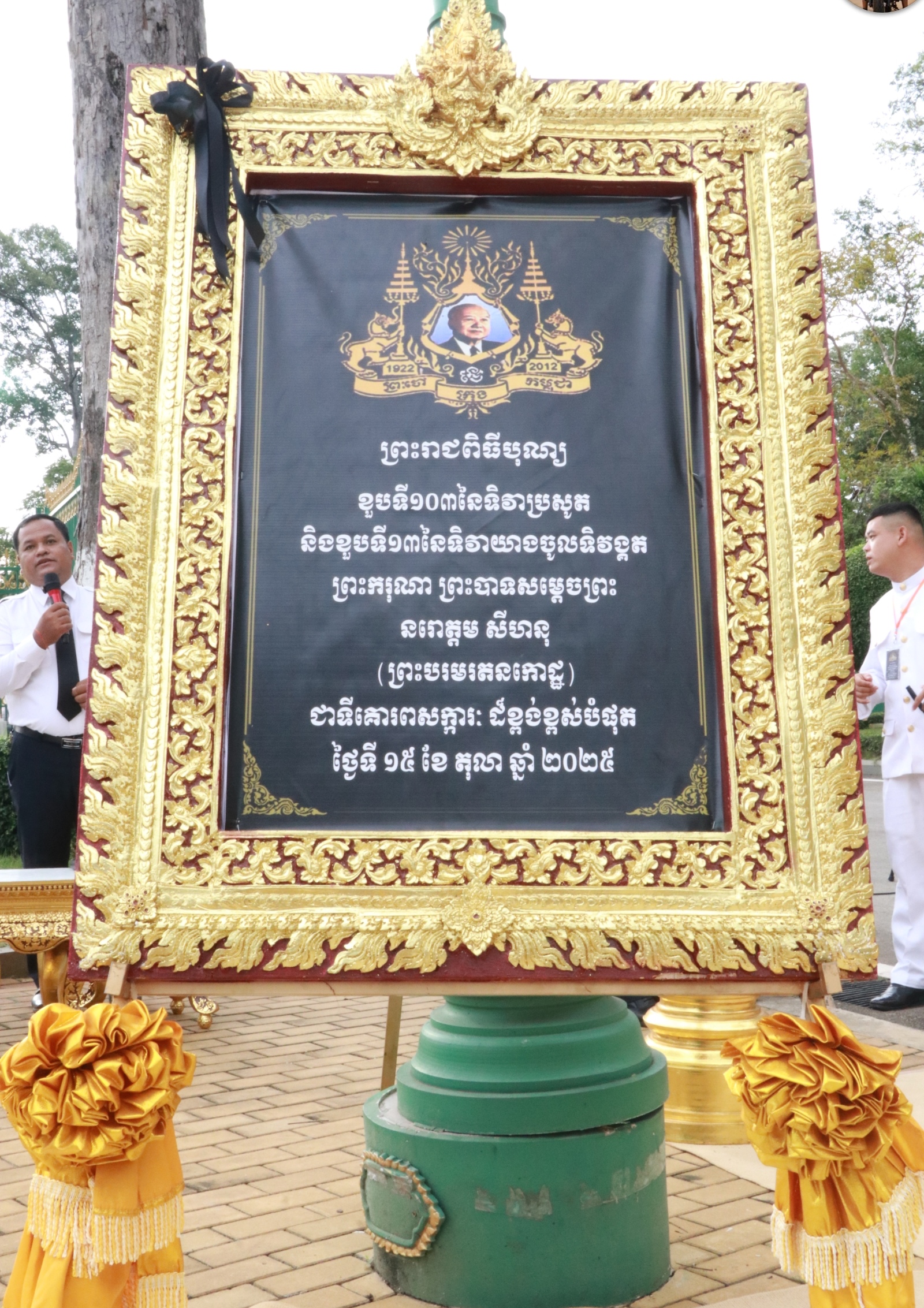 សូមថ្វាយមហាព្រះរាជកុសល ខួបគម្រប់១៣ព្រះវស្សា នៃការយាងសោយព្រះទិវង្គត របស់ព្រះករុណា សម្តេចព្រះនរោត្តម សីហនុ ព្រះមហាវីរក្សត្រ ព្រះវររាជបិតាឯករាជ្យបូរណភាពទឹកដី និងឯកភាពជាតិខ្មែរ ព្រះបរមរតនកោដ្ឋ (១៥ តុលា ឆ្នាំ២០១២ – ១៥ តុលា ឆ្នាំ២០២៥) នាថ្ងៃពុធ ៨រោច ខែអស្សុជ ឆ្នាំម្សាញ់ សប្តស័ក ព.ស.២៥៦៩ ត្រូវនឹងថ្ងៃទី១៥ ខែតុលា ឆ្នាំ២០២៥។