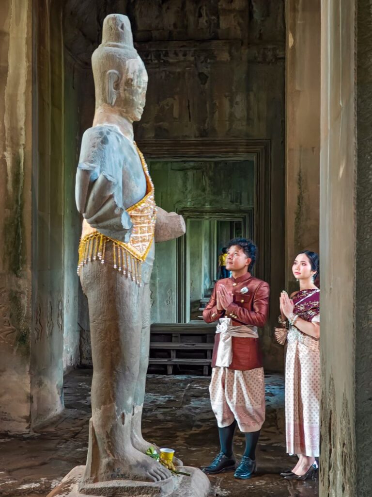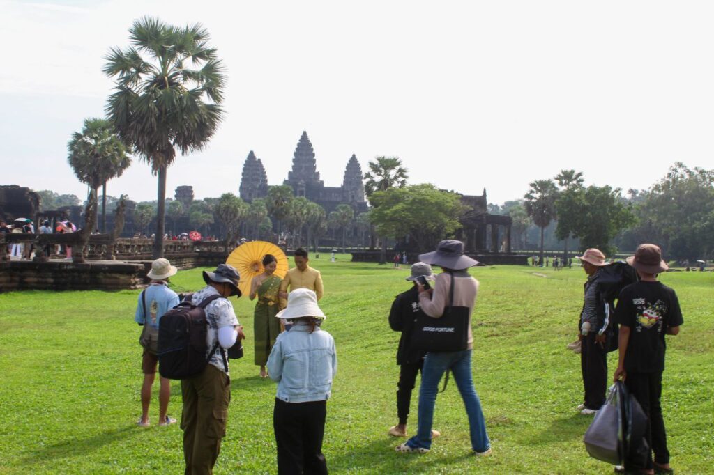 លោក ឡេក គឹមលីន ប្រធានគ្រប់គ្រងភ្នាក់ងារទេសចរណ៍ប្រាសាទអង្គរវត្ត ឱ្យដឹងថា ជារៀងរាល់ឆ្នាំ ក្រោយថ្ងៃចេញវស្សា នៅប្រាសាទអង្គរ ក្នុងមួយថ្ងៃមានកូនកម្លោះក្រមុំ យ៉ាងហោចណាស់ពី៥០ទៅ៦០គូ មកថតរូបមុនរៀបអាពាហ៍ពិពាហ៍ទុកជាអនុស្សាវរីយ៍។ ការថតរូបអាពាហ៍ពិពាហ៍ដោយភ្ជាប់ជាមួយប្រាសាទអង្គរវត្ត មានតាំងតែពីម៉ោង៧ព្រឹក រហូតដល់ម៉ោង៥ល្ងាច។ អ្នកថតរូបទៀតសោត បានជ្រើសរើសទីតាំងពិសេសៗ និងកាលវេលាតាមការច្នៃប្រឌិតបានធ្វើឱ្យរូបភាពមានកាន់តែមានសោភ័ណភាព និងស្រស់ស្អាតប្រៀបបានឋានសួគ៌លើដី។