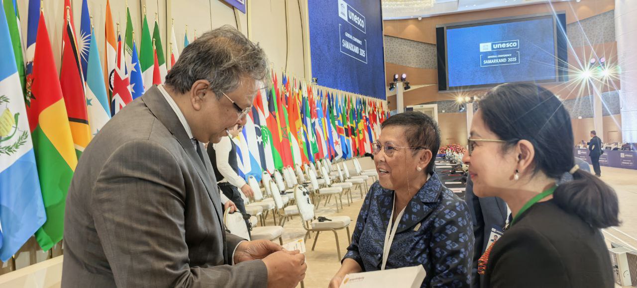 បានអញ្ជើញទំនាក់ទំនងការងារជាមួយឯកឧត្តម Khondker M. Talha ឯកអគ្គរដ្ឋទូត ប្រតិភូអចិន្ត្រៃយ៍នៃប្រទេសបង់ក្លាដេសប្រចាំអង្គការយូណេស្កូ ជាប្រធានអង្គមហាសន្និបាតលើកទី៤៣ ព្រមទាំងបណ្តាគណ:ប្រតិភូផ្សេងៗទៀតដើម្បីបង្កើនកិច្ចសហប្រតិបត្តិការលើវិស័យវប្បធម៌ និងជំរុញការគាំទ្ររវាងគ្នាទៅវិញទៅមក៕