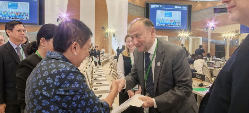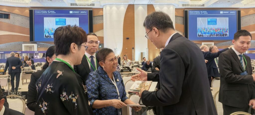 ក្នុងឱកាសដឹកនាំគណ:ប្រតិភូកម្ពុជាចូលរួមកិច្ចប្រជុំមហាសន្និបាតលើកទី៤៣អង្គការយូណេស្កូ នាថ្ងៃទី១ ខែវិច្ឆិកា ឆ្នាំ២០២៥ លោកជំទាវបណ្ឌិតសភាចារ្យ ភឿង សកុណា រដ្ឋមន្រ្តីក្រសួងវប្បធម៌និងវិចិត្រសិល្បៈ ប្រធានគណ:ប្រតិភូកម្ពុជា