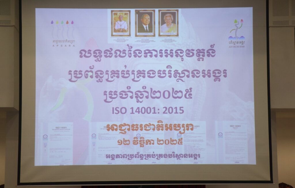នាព្រឹកថ្ងៃទី១២ ខែវិច្ឆិកា ឆ្នាំ២០២៥នេះ នៅសាលសន្និសីទអង្គរ ស្នាក់ការកណ្តាលអាជ្ញាធរជាតិអប្សរា មានរៀបចំបើកសិក្ខាសាលាផ្ទៃក្នុងស្ដីពី “ដំណើរការអនុវត្តន៍ប្រព័ន្ធគ្រប់គ្រងបរិស្ថានដើម្បីតំបន់អង្គរ” ក្រោមអធិបតីភាពឯកឧត្តម សុខ លក្ខិណា តំណាងឯកឧត្តម ហង់ ពៅ អគ្គនាយកអាជ្ញាធរជាតិអប្សរា និងជាប្រធានប្រព័ន្ធគ្រប់គ្រងបរិស្ថាន-អង្គរ ព្រមទាំងសិក្ខាកាម ដែលជាមន្ត្រី -បុគ្គលិកមកពីគ្រប់នាយកដ្ឋានក្រោមចំណុះនៃអាជ្ញាធរជាតិអប្សរា សរុបប្រមាណប្រមាណ១០០នាក់។