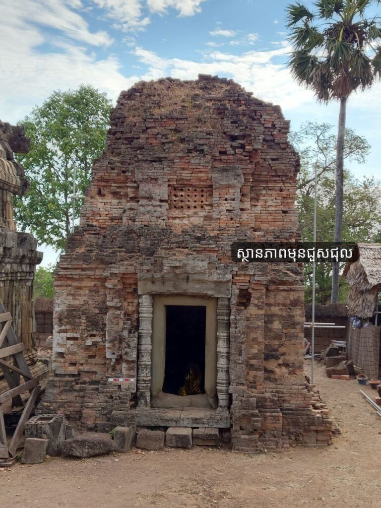 ចំពោះបច្ចេកទេសជួសជុលប្រាសាទនេះ ក្រុមការងារបានសម្អាតកម្ទេចដី ឬសស្មៅ ដើមរុក្ខជាតិ និងព្យាយាមរកឥដ្ឋចាស់ៗដែលជ្រុះរាយប៉ាយនៅខាងក្រោម ឬនៅជុំវិញ ដោយពង្រឹងខឿន ដំបូល និងតួប្រាសាទឱ្យមានភាពរឹងមាំឡើងវិញ។