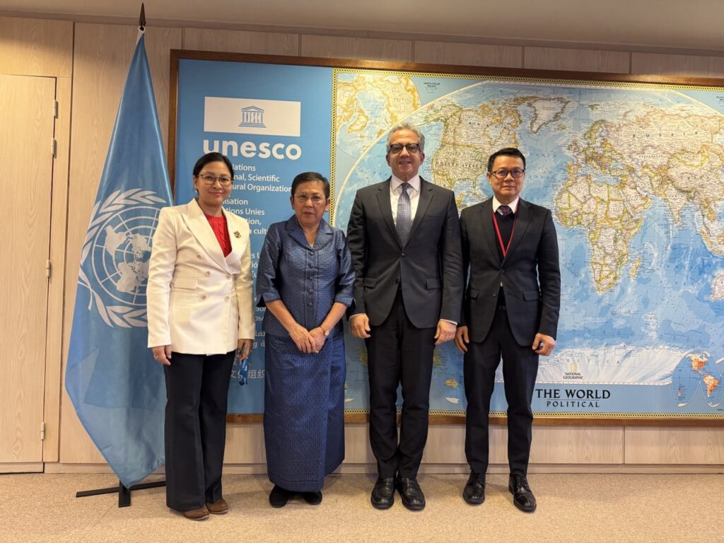 នៅថ្ងៃទី២៦ ខែវិច្ឆិកា ឆ្នាំ២០២៥ នៅទីស្នាក់ការកណ្តាលអង្គការយូណេស្កូ នាទីក្រុងប៉ារីស លោកជំទាវបណ្ឌិតសភាចារ្យ ភឿង សកុណា រដ្ឋមន្រ្តីក្រសួងវប្បធម៌និងវិចិត្រសិល្ប: បានដឹកនាំគណ:ប្រតិភូកម្ពុជាចូលជួបសម្ដែងការគួរសម និងពិភាក្សាការងារជាមួយឯកឧត្តម Khaled Ahmed El-Enany Ali Ezz អគ្គនាយកអង្គការយូណេស្កូ។