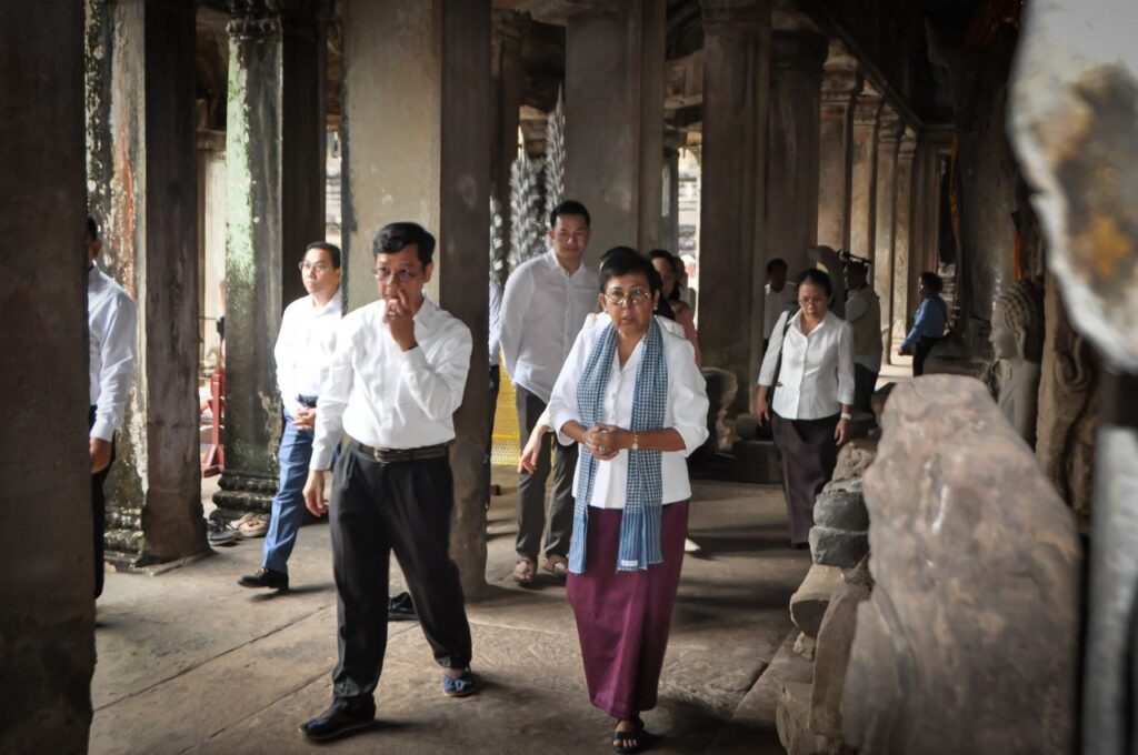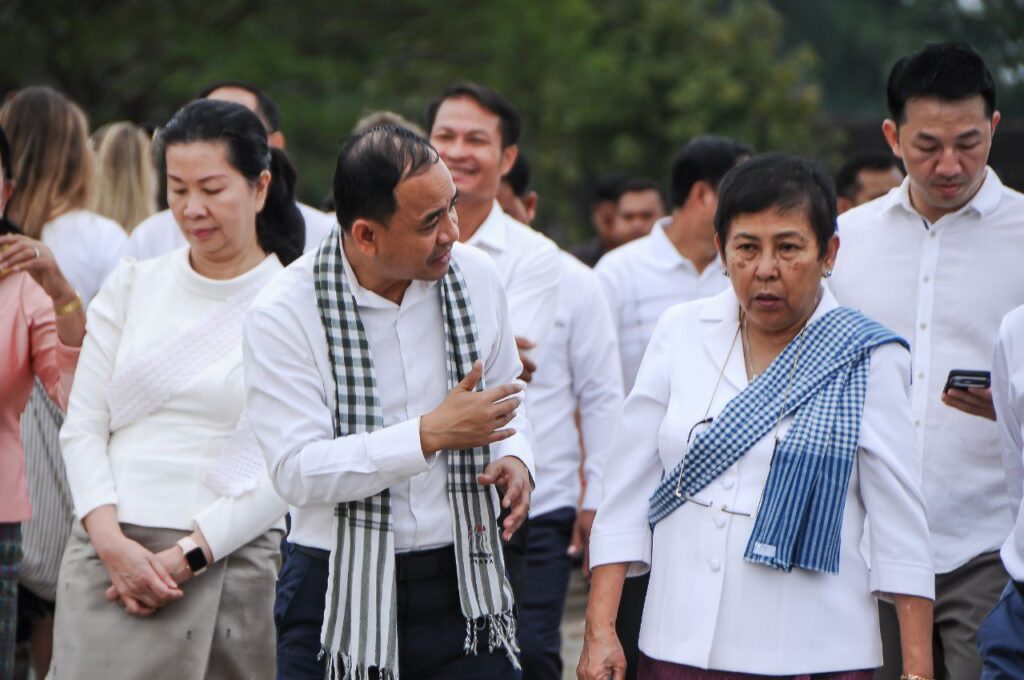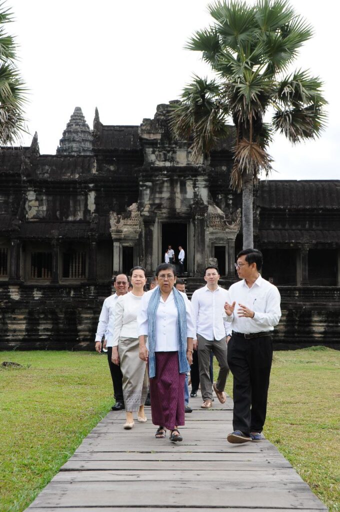លោកជំទាវបណ្ឌិតសភាចារ្យ ភឿង សកុណា អញ្ជើញពិនិត្យទីតាំងមួយចំនួននៅប្រាសាទអង្គរវត្ត ដើម្បីត្រៀមក្នុងកិច្ចប្រជុំកំពូលហ្រ្វង់កូហ្វូនី លើកទី២០ ឆ្នាំ២០២៦