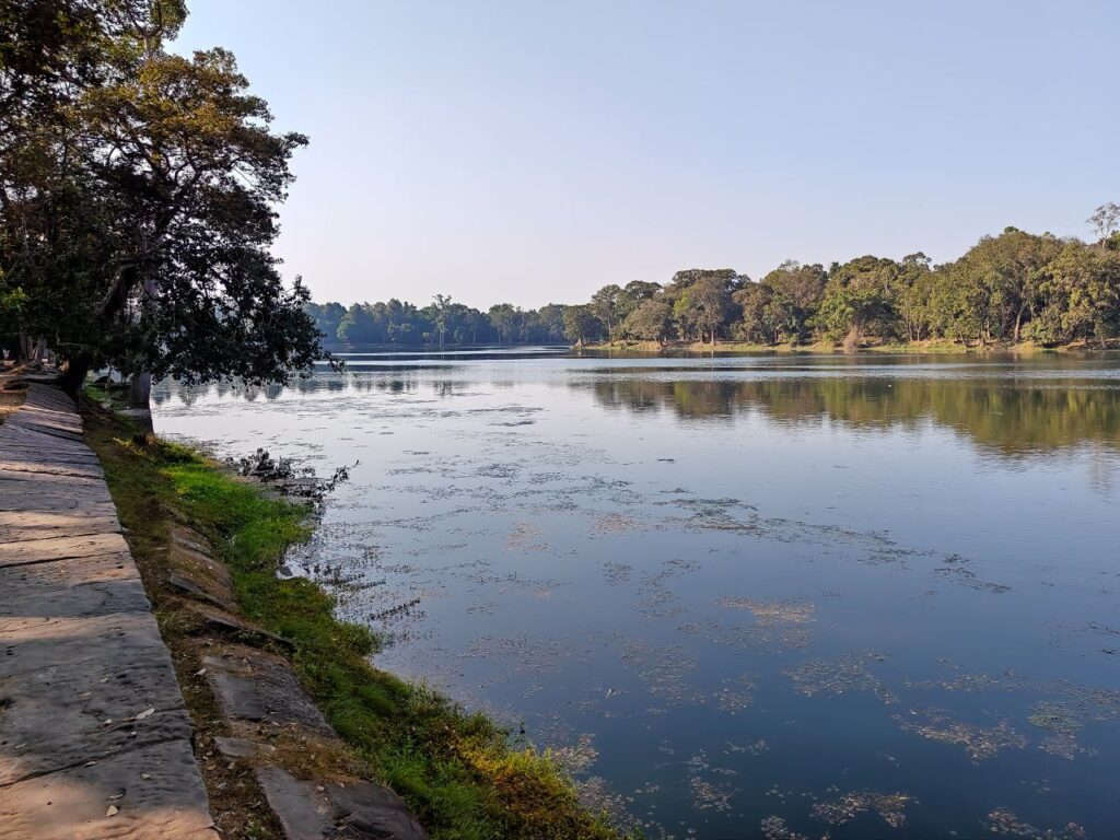 ពេលធ្វើដំណើរមកដល់កសិន្ធុអង្គរវត្តភ្លាម ភ្ញៀវទេសចរតែងលាន់មាត់ និងត្រជាក់ភ្នែកពេលក្រឡេកឃើញទឹកថ្លា ខៀវស្រងាត់ ចាំងឆ្លុះដើមឈើធំៗដែលដុះត្រៀបត្រាជុំវិញកសិន្ធុ។