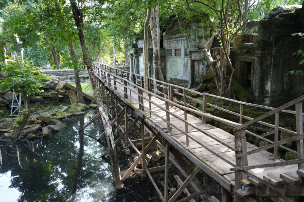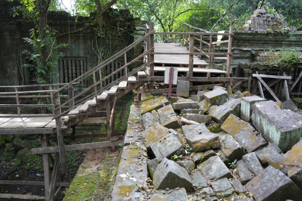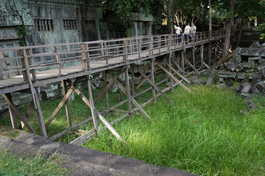 នាយកដ្ឋានអភិរក្សប្រាសាទ និងបុរាណវិទ្យានៃអាជ្ញាធរជាតិអប្សរា កំពុងដំណើរការជួសជុលស្ពានឈើនៅប្រាសាទបេងមាលា ដែលមានការពុកផុយ និងទ្រុឌទ្រោមខ្លាំង។