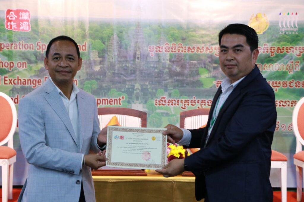នៅរសៀលថ្ងៃទី១៩ ខែកុម្ភៈ ឆ្នាំ២០២៥នេះ ឯកឧត្តមបណ្ឌិត ហង់ ពៅ អគ្គនាយកអាជ្ញាធរជាតិអប្សរា បានអញ្ជើញចូលរួមពិធីបិទសិក្ខាសាលាស្តីពី កម្មវិធីផ្លាស់ប្តូរយុវជនវប្បធម៌លើការគ្រប់គ្រងបេតិកភណ្ឌពិភពលោក និងអភិវឌ្ឍន៍សហគមន៍ ដែលជាសិក្ខាសាលាអន្តរជាតិ រៀបចំឡើងដោយអាជ្ញាធរជាតិអប្សរា និងគាំទ្រដោយមូលនិធិសហប្រតិបត្តិការពិសេសមេគង្គ-ឡានឆាង។