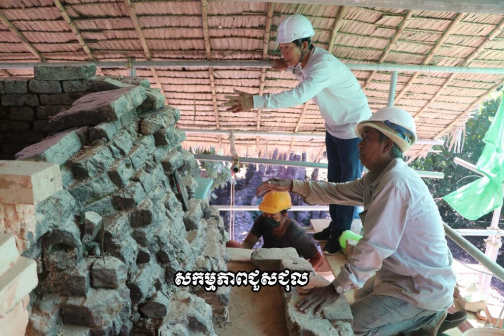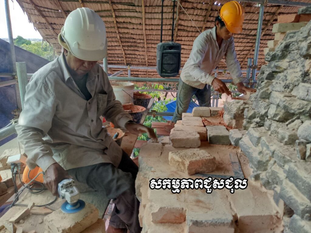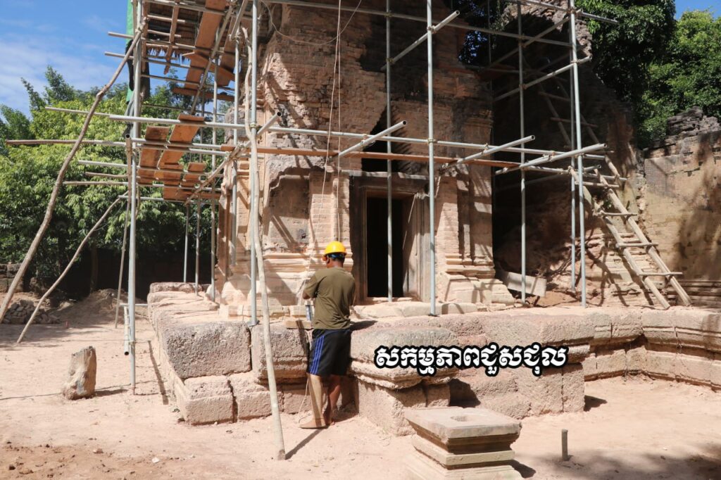 លោក រ៉ាវី បន្តថា ក្រុមការងារបានធ្វើសម្រង់ប្លង់ ធ្វើកំណាយកាយកំណកដីដែលចាក់បង្គរជុំវិញខឿន។ ការជួសជុលប្រើបច្ចេកទេស អាណាឡូជី (Analogy) គឺចម្លងតាមទម្រង់ដើមផ្នែកដែលនៅសេសសល់បំពេញទីតាំងដែលខូចខាតឬបាត់បង់។ ការជួសជុលត្រូវបានធ្វើឡើងដោយយកចិត្តទុកដាក់ ដើម្បភាពរឹងមាំនៃប្រាសាទនេះឡើងវិញ។